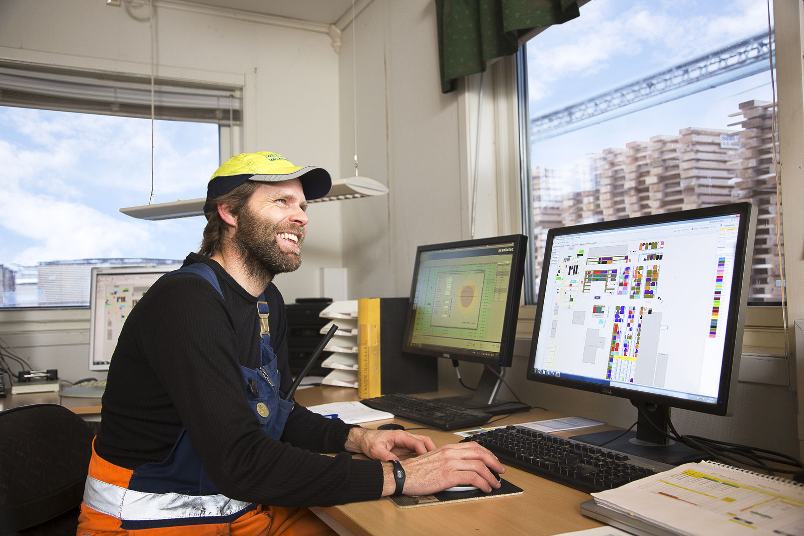 Systemet sikrer full kontroll og full sporbarhet. Et kart over fabrikkområdet viser alle paller i de ulike tørkene, og alle pallene med ferdig tørket virke. Et dobbeltklikk på en pall – og vips så er hele historikken oppe: Når det ble tørket, i hvilken tørke, til hvilken fuktighetsgrad, kontrollert av hvem, ja til og med hvem som kjørte trucken kommer opp.