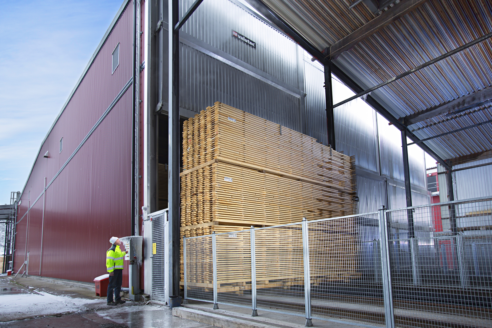 Temperatur som i en badstue og vind med storms styrke. Nøyaktighet og tett oppfølging i prosessen. Presisjonsnivået er høyt når Moelven reduserer fuktigheten i treverket til akkurat det nivået hver enkelt kunde etterspør.