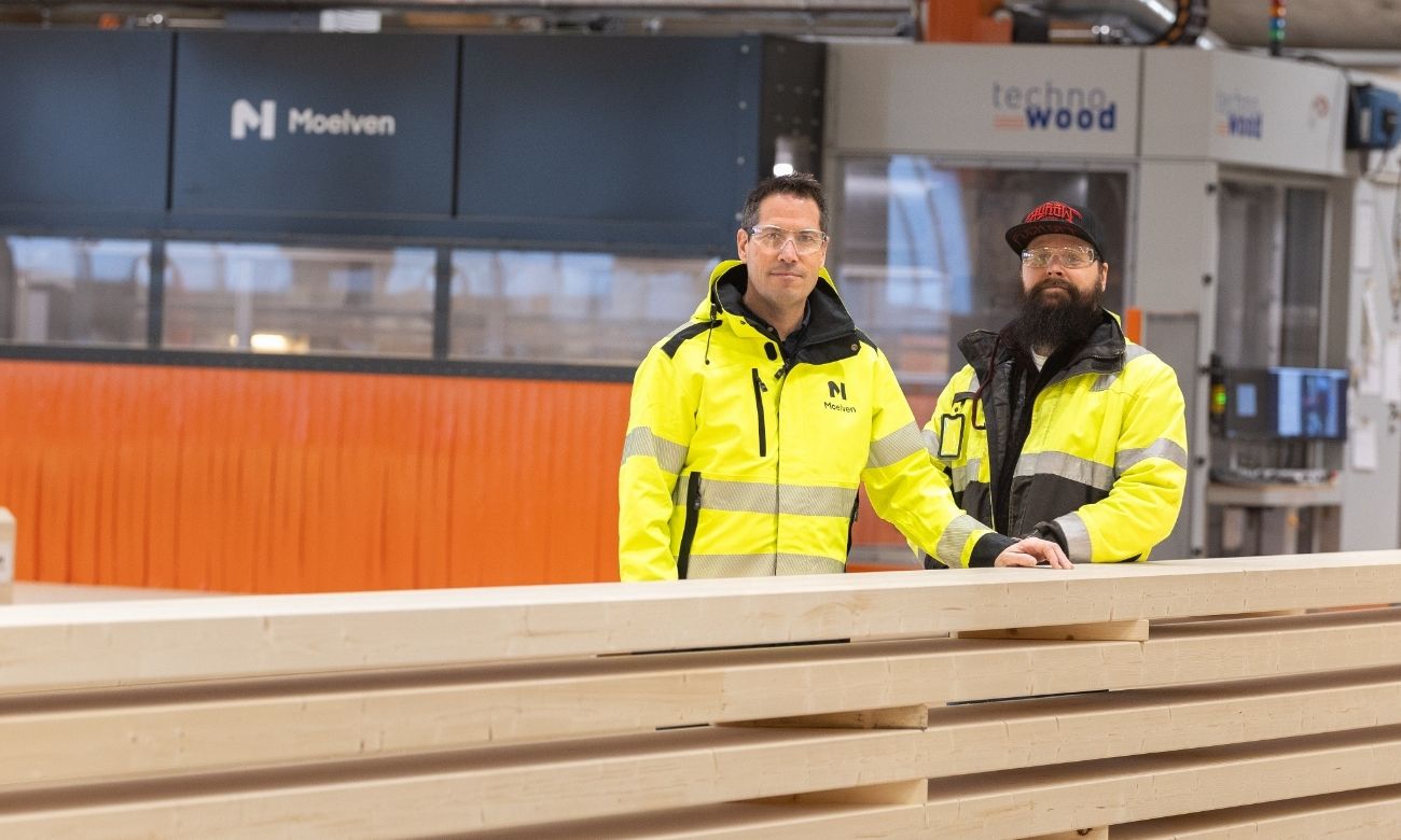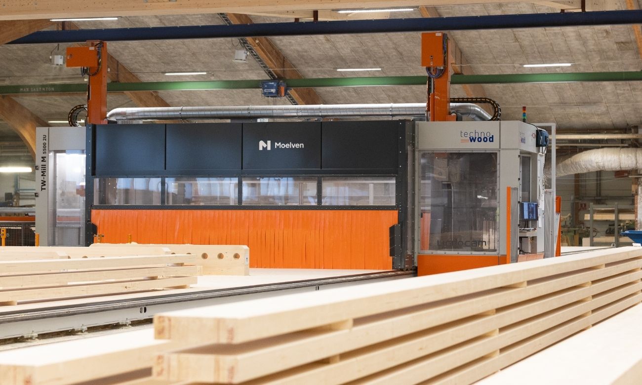 Med fem CNC‑maskiner som jobber sammen, høy teknisk kompetanse i organisasjonen og en produksjon som er rigget for å skaleres til fremtidige volumer, fortsetter Moelvens limtreselskaper i begge land å styrke sin posisjon ved å kombinere avansert teknologi med lange håndverkstradisjoner.