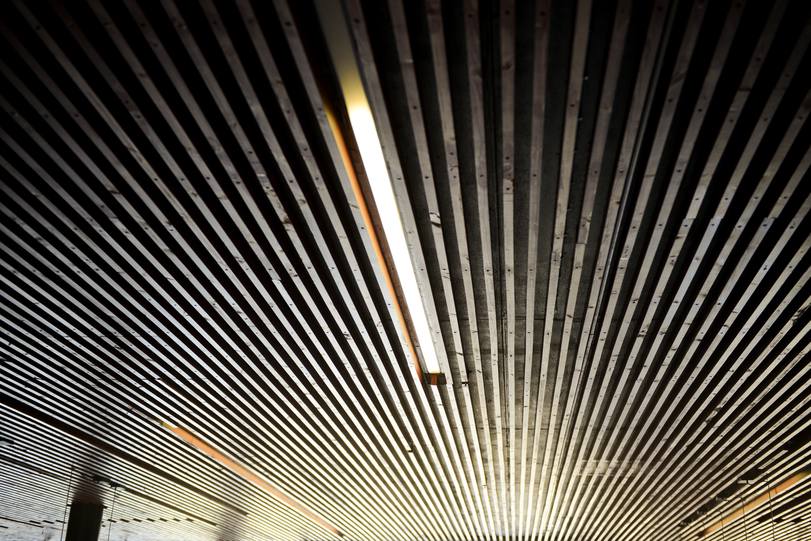 – Det ble en del prøving og feiling. Men det lærte vi mye av, og resultatet ble veldig flott. Himlingen er utført i vanlige kryssfinerplater med spiler i kryssfiner, alt sammen i branntrygt tre. Bergenserne har jo lett for å uttrykke seg, så det var en del skepsis i starten, men nå hører vi ikke noe av det lenger. Mathallen har funnet sin plass på Torget, og folk har fått større muligheter til servering og et sted å sette seg ned, sier Bernhoft.