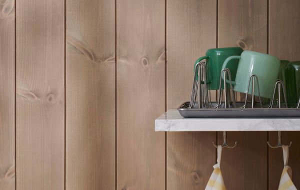 Ferdigbeiset trepanel gir rommet et lunt og levende uttrykk, der treets naturlige struktur og fargespill får skinne. Standardfargene våre er transparente, slik at treverket får vist seg fra sin beste side.