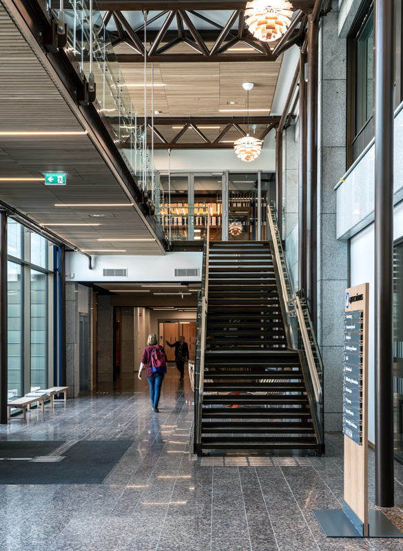 Rådhuset på Gjøvik er rehabilitert og 7000 m2 er fullstendig renovert. Resultatet er et åpent, sikkert og publikumsvennlig rådhus. Her er det lagt vekt på at besøkende skal oppleve et godt og trygt møte med Gjøvik kommune. Aktivitetsbaserte arbeidsplasser og ulike romløsninger i et miljø preget av nordisk og lokal design.
