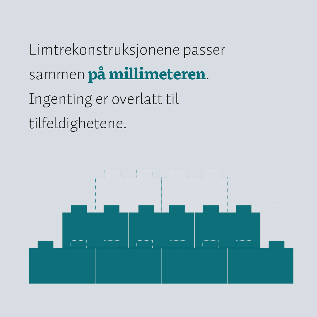 Verdens mest miljøvennlige møbelfabrikk består av 2700 m3 limtre og massivtre. Visste du at å bygge med limtre og massivtre er litt som å bygge med grønne byggeklosser? Det gir en kjapp, bærekraftig og trygg byggetid. Elementene produseres nemlig ferdig i fabrikk, før de heises på plass på byggeplass.