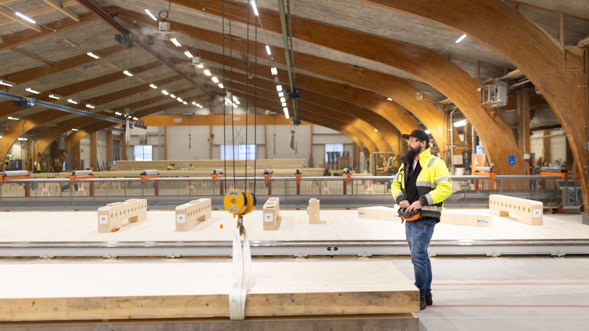 Satsningen markerar ett tekniksprång som förändrar både produktionen, precisionen och möjligheterna för Moelvens limträbolag i framtida projekt. Den toppmoderna, 60 meter långa maskinen fräser, borrar, sågar och formar limträ i avancerade geometrier och är för vissa produkttyper upp till sex gånger snabbare än tidigare, samtidigt som den bidrar till effektivare produktionsflöden.