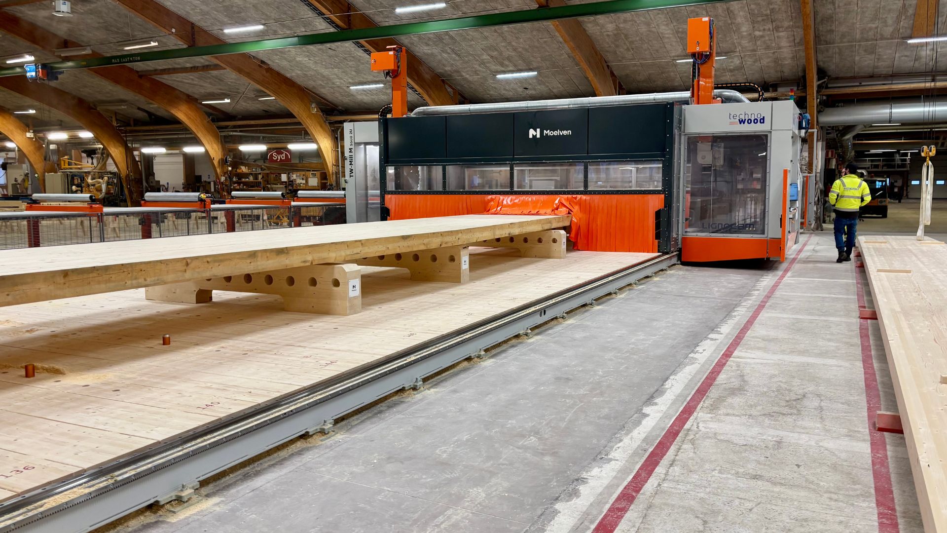 Med fem CNC‑maskiner som samverkar, hög teknisk kompetens i organisationen och en produktion som är redo att skalas upp för framtida volymer, fortsätter Moelvens limträbolag i båda länderna att stärka sin position genom att förena avancerad teknik med lång hantverkstradition.
