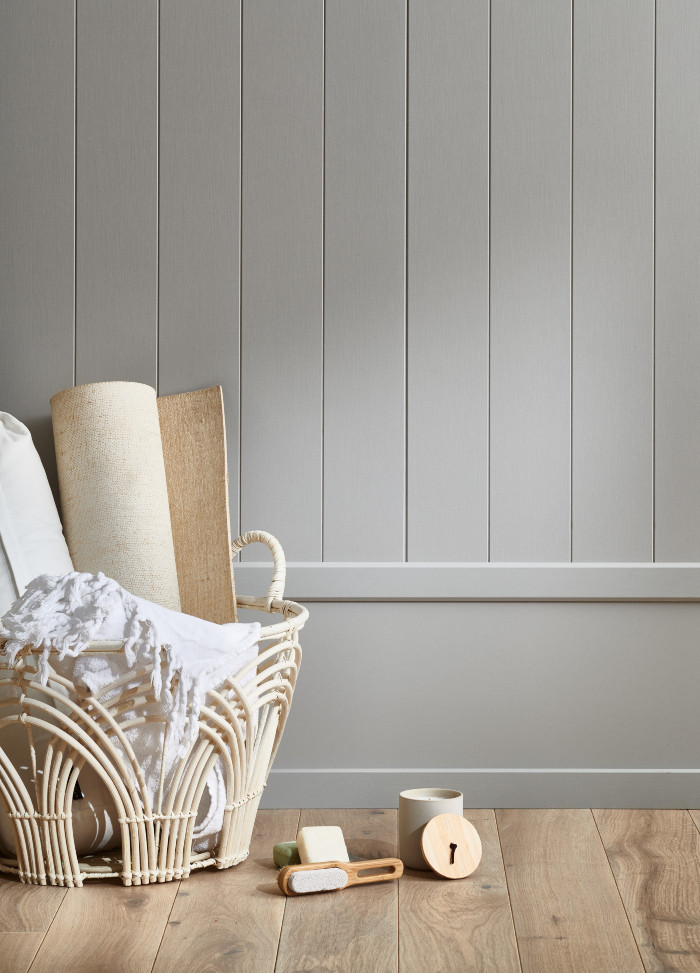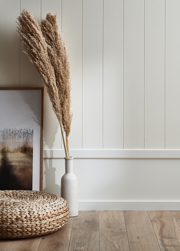 Renovera hela väggen med Regina Vägg Dekor för ett snyggt helhetsresultat tillsammans med den höga sockeln.