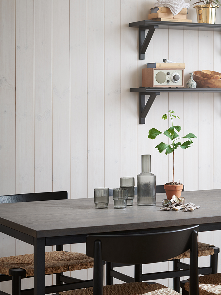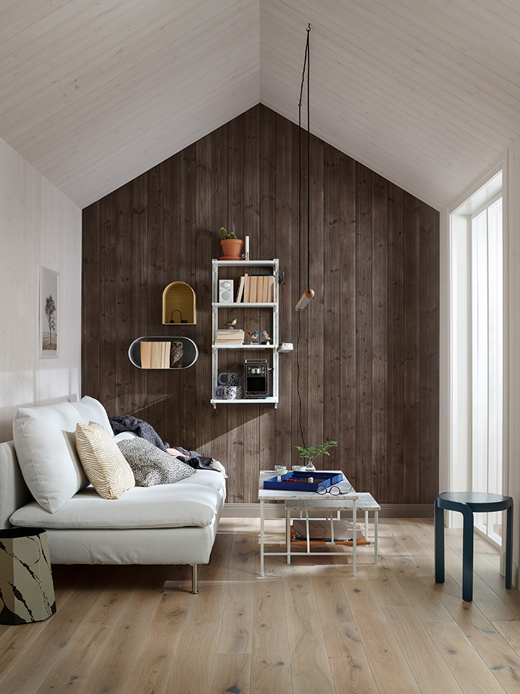 Låt dig inspireras av våra olika paneler som är enkla att sätta upp och som finns i flera olika färdigmålade nyanser och utföranden. Visste du att trä dessutom ger dig ett bättre inomhusklimat och att det har en avstressande effekt?