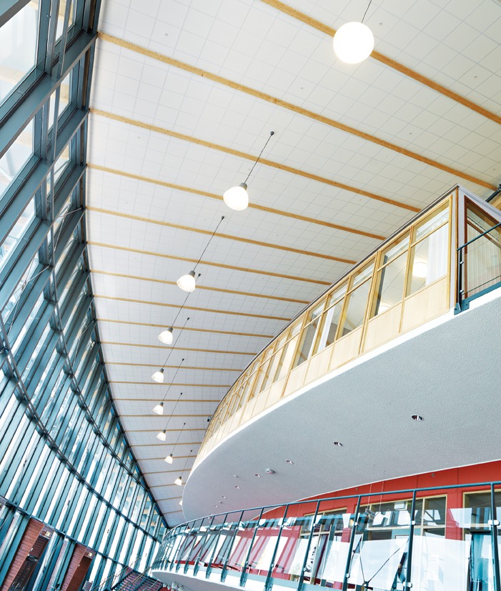 - Beställaren, Göranssonska Stiftelserna, tycker mycket om limträ och eftersom de ville ha det blev det ett naturligt val från min sida. Limträ passar mycket bra i en konstruktion som denna, säger arkitekt Håkan Wickström. - Det är inte var dag man får rita ett projekt av det här slaget på ett litet kontor som vårt.