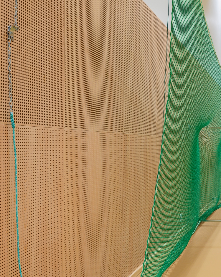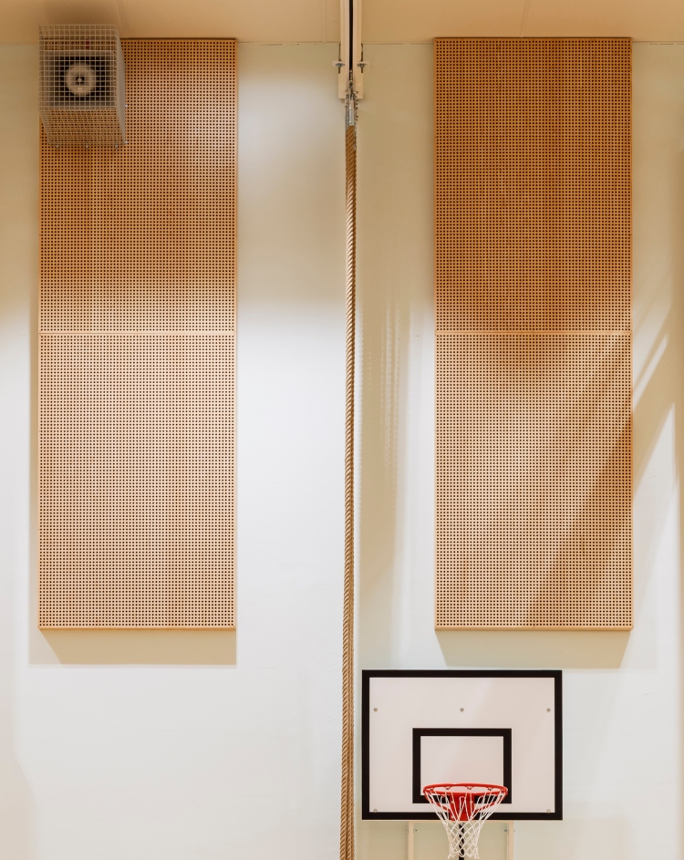 I projektet Parkdalskolans idrottshall ställdes höga krav på akustik och estetik. Lösningen blev tavlor av vitpigmenterad, brandskyddad och perforerad Studiopanel i Ask från Moelven. Studiopanelen är estetiskt tilltalande med sin höga kvalitet på ytfanéret.
