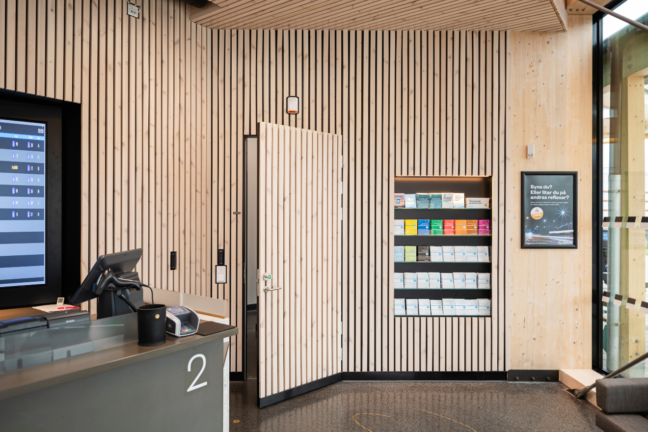 Västtrafik har byggt ett nytt resecentrum i Angered. Wingårdhs Arkitekter har ritat och det är uppfört enligt höga miljökrav. Vi har levererat interiöra brandskyddade paneler, både ribbor och plywood.