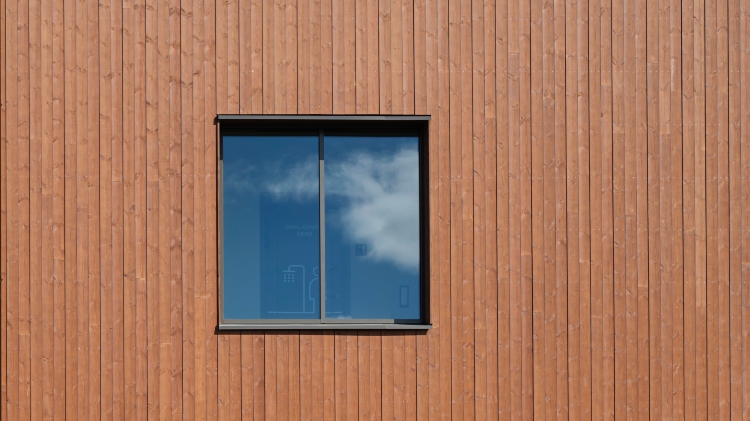 Fasaden är utförd i infärgad, värmebehandlad träpanel som med tiden kommer att bli ännu mer livfull och uttrycksfull