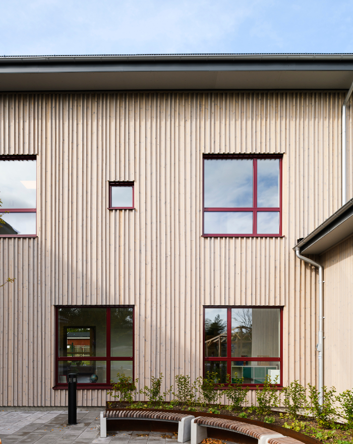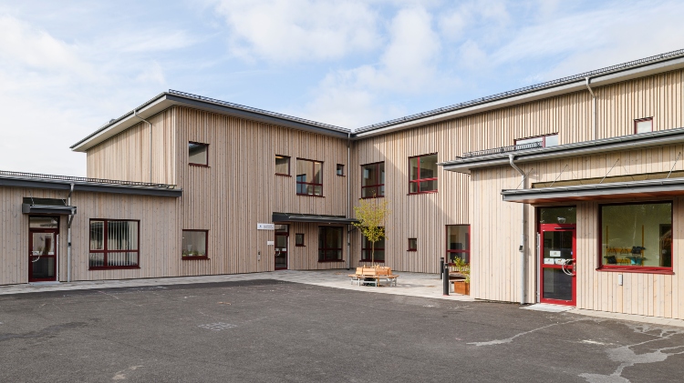 ThermoWood tillsammans med vår industriellt påförda patineringsolja är den perfekta fasadlösningen för offentliga byggnader. Kombinationen skapar en hållbar ytterpanel med minimala underhållskrav. Den gråpigmenterande oljan ger ett extra skydd och på så sätt kan den naturliga patineringen ta över på sikt, på ett omsorgsfullt sätt. Panelen är särskilt efterfrågad bland skolbyggnader och olika typer av vårdanläggningar.